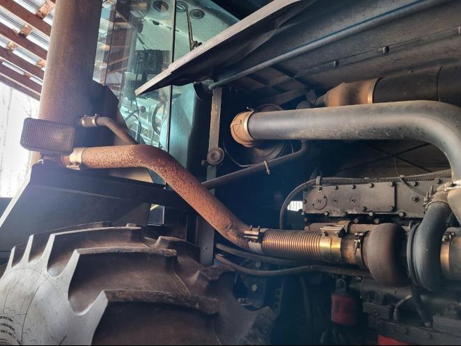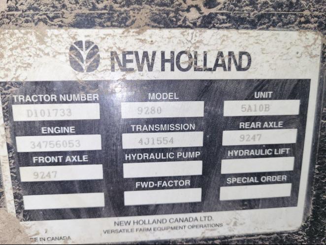 This 1994 New holland Tractor has 6178 hours on it, 4 rear remotes, 12 speed partially synchronized transmission, 250HP Cummins 10.0L 6 cylinder, closed center load-sensing pump 25 gpm (pump replaced in 2024), 20.8-38 tires.