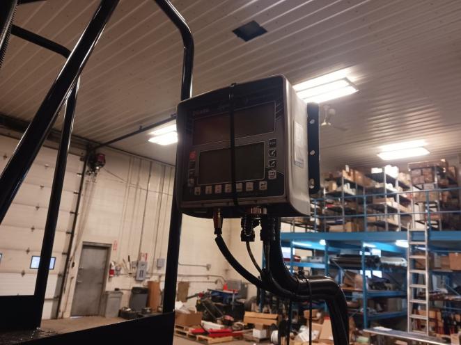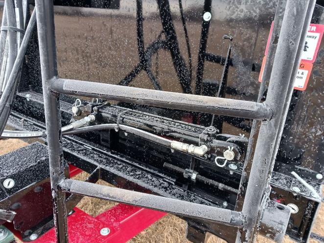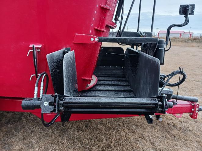 8' conveyor, dogleg, 10" rubber extension, 1000 rpm CV PTO, articulating hitch, DG600 scale with extra side display.