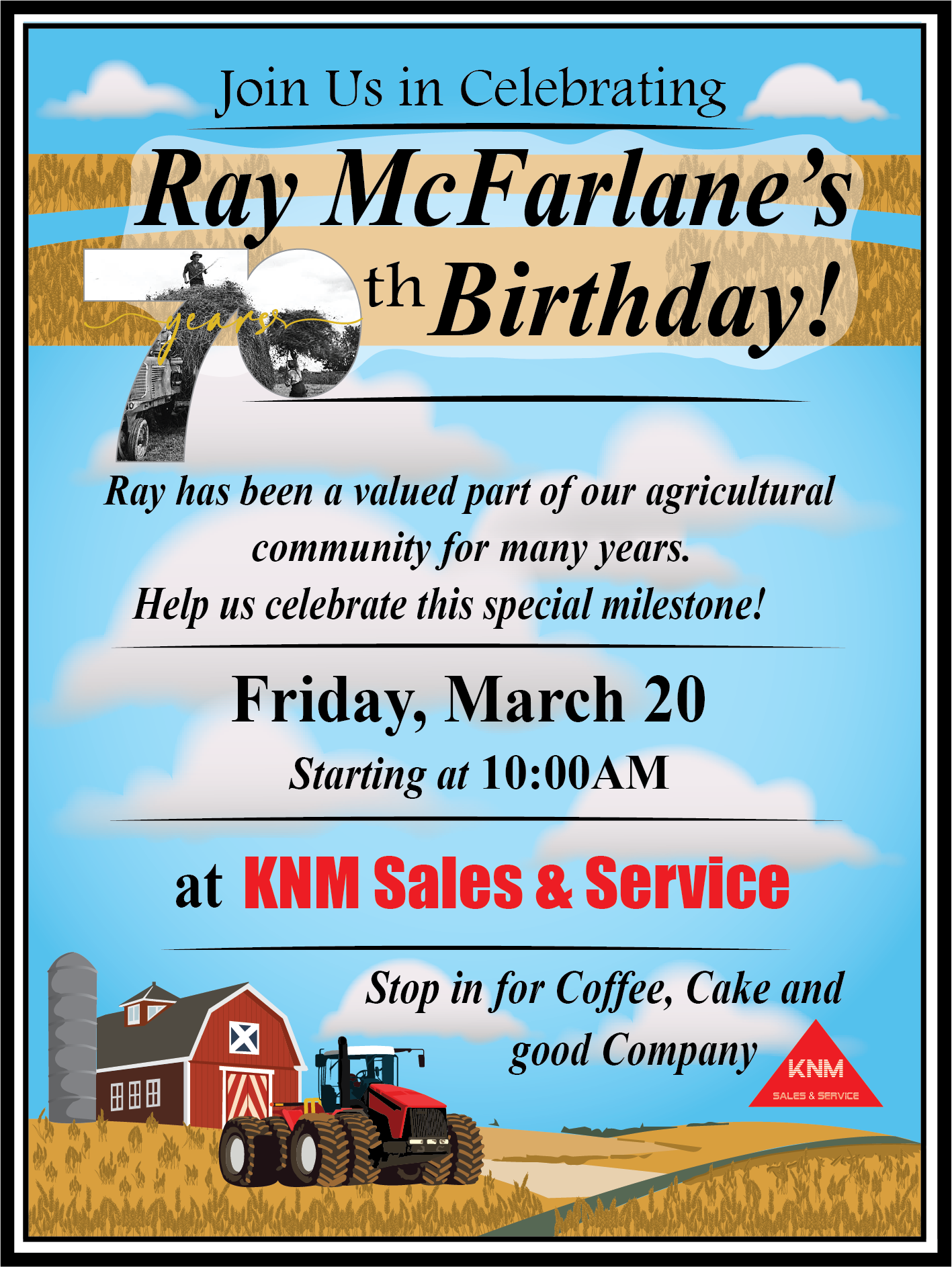 At KNM Sales & Service, we believe in celebrating the people who have helped shape our agricultural community, and this March, we have a very special milestone to recognize.