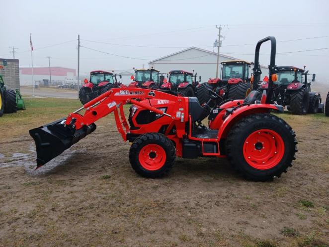 This Tractor comes with second remote valve, hst cruise kit, 3rd function valve kit, loader, bolt on cutting edge, block heater.