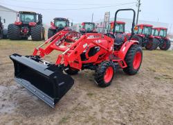 KI0253 has creeper gear as well. All have R14 tires, second and third remote valve, loader and bolt on cutting edge. Low rate finance available.
